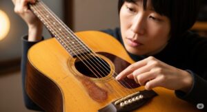 ギターのタイプによって細かい手順は異なりますが、ここでは一般的なアコースティックギターを例に流れを説明します。
