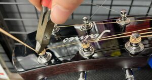 - 余った弦をカットする:ペグから飛び出た余分な弦をニッパーでカットします。目に刺さらないよう注意しましょう。