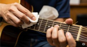 最も基本的で、最も効果的な方法です。演奏後の弦には、目には見えない汗や皮脂がたくさん付着しています。これがサビや劣化の最大の原因となります。演奏が終わったら、必ずギター用のクロスで弦を1本1本丁寧に拭き上げる習慣をつけましょう。