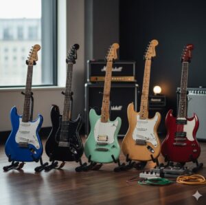 ここからは、上記の理論に基づき、実際に私が自信を持っておすすめできる「弾きやすいエレキギター」を具体的なモデル名で紹介していきます。それぞれのギターが「なぜ弾きやすいのか」という理由にも注目してください。